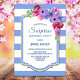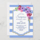 Blue Striped Floral Surprise Birthday Party Invitation