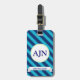 Bold blue and turquoise stripes decorates this fun luggage tag. Customize this luggage tag by changing the monogram letters and phone number to suit your needs. The design is from original art.