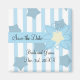 A pretty whimsical design of soft blue stripes and stars. Customize with names and wedding date as desired.