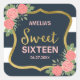 Blue Stripes, Blush Pink Roses Sweet 16 Square Sticker