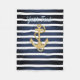 Blue Stripes & Gold Anchor Nautical Fleece Blanket