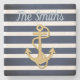 Blue Stripes & Gold Anchor Nautical Stone Coaster
