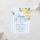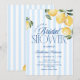 Celebrate the bride-to-be with a vibrant and stylish touch using our citrus theme bridal shower invitation. Featuring light blue stripes paired with rich blue typography and watercolor lemons, this design brings a fresh, modern twist to a retro-inspired aesthetic.