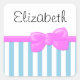 Blue Stripes, Lines, Striped Pattern, Your Name Square Sticker