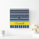 Blue Stripes, Lines, Striped Pattern, Your Name Square Wall Clock