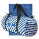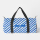Blue Stripes on White and Text Duffle Bag