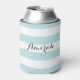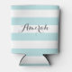 Customizable can coolers featuring modern light blue and white stripes pattern and grey modern calligraphy script. Other colours, patterns and similar items are available in my store.