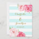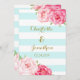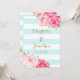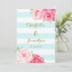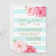 Wedding invitation custom template cards in light pastel aqua teal turquoise sky blue and white stripes pattern with pink fuchsia hot pink rustic vintage flowers and gold handwritten style vintage text. Customize these invitations with your wedding details. Available in matching products for all of your wedding needs.