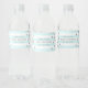 Custom text baby shower water bottle label in pretty light baby blue and white stripes pattern with silver confetti, please note silver is photographic effect only.