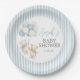 Blue Stripes Twins Bears Baby Shower Paper Plate