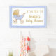 Welcome your guests to your baby shower with this cute minimal baby boy shower welcome banner featuring a pastel blue and gold retro baby carriage and the mother-to-be's name in a stylish script. You can personalize the text on the carriage with the baby's name or gender ("It's a Boy!") or leave blank.