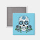 Dia de los Muertos (Day of the Dead) sugar skull with roses and hearts in hues of blue.