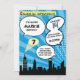 Blue Superheros Comic Book Styled Birthday Party Invitation