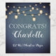 Elegant blue surprise retirement party napkins, featuring shimmering string lights and a combination of script and open face typography on a dark blue ombre background graduating from lighter blue in the centre to darker blue on the outer edges for a soft shimmering atmospheric effect. Perfect for men's or women's retirement celebration.