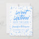 Elegant & Modern "Sweet 16 ( Sixteen ) Birthday Party" design with Blue & White Glitter Sparkle Confetti Dots motif, and custom name and details text. Easy to use and easy to personalize. Order Today!