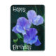 Birthday magnet with photo of blue sweet pea flowers