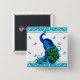 Blue swirl Border and Peacock Design 2 Inch Square Button