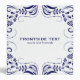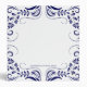Blue swirls frame on a white background.