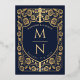Invite your wedding guests with this Royal Sword & Shield Medieval Fantasy Monogram design. This design is perfect for couples seeking a regal yet modern-day medieval fantasy aesthetic. Personalize the text, font, and background colour to suit your design preferences. Matching Items in our shop for a complete party theme. Please Note that the gold on the back of the invitation is NOT real foil and is printed in flat colours.