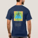 beautiful colour logo on a navy blue shirt.