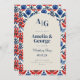 This colourful blue and red talavera tile inspired Mexican wedding invitation is the perfect way to invite loved ones to celebrate your Mexico themed or destination wedding! Elegant wedding invitation with floral images and arch as well as monogram letters for the new married couple!