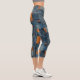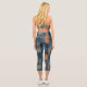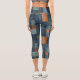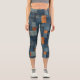 Blue & Tan Denim Patchwork Custom Text & Logo Capri Leggings