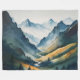 This captivating horizontal fleece blanket presents a breathtaking mountain scene, masterfully rendered in soothing shades of blue and tan that evoke a sense of serenity and awe. At the heart of the composition, a crystal-clear stream meanders gracefully down the mountain, its waters reflecting the sky's azure hue, creating a harmonious blend of colours that exudes tranquillity. The mountains, depicted in varying shades of tan, rise majestically against the backdrop, their peaks touching the sky, suggesting both their grandeur and the timeless beauty of nature.