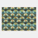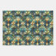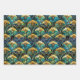 Blue, teal and Gold Peacock Stained Glass Wrapping Paper Sheet