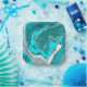 Blue, Teal and Turquoise Marble Fluid Art Paper Plate