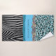 These awesome custom towel set is awesome for making sure nothing gets lost in the college laundry machine because it's customized with your name on it! Great for little girls who love blue or boys that want a little bling. Featuring a teal black design with teal blue glitter and blue leopard print.