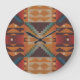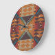 Blue Teal Dark Brown Beige Orange Red Tribal Art Large Clock