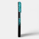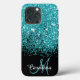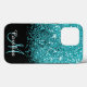 Blue, teal glitter, personalized with your name and monogram. Mobile iPhone 13 Pro phone case.