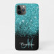 Blue, teal glitter, personalized with your name and monogram iPhone 11 Pro Case. Mobile phone case.