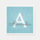 Teal Aqua Blue Faux Glitter and Sparkle Elegant Monogram Birthday Party Napkins. This Birthday Party, Bridal Shower, Wedding, Baby Shower Napkin can be customized to include your initial and first name.