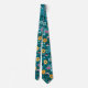 Blue Teal Green Red Pink Yellow Floral Pattern Tie