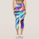 Blue Teal Pink Yellow White Wavy Abstraction Capri Leggings
