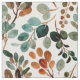 Pretty fabric with blue/teal, rust/burnt orange, and sage green watercolor leaves on white.