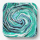 Blue, Teal, Turquoise and White Swirls Marble Art Paper Plate