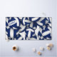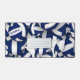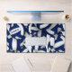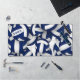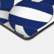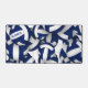 This cool volleyball themed desk mat features a pattern of varied size dark blue and white volleyballs turned every which way overlying a volleyball net detail accent graphic - background is customizable white - personalize the athlete's name at the upper left corner on one of the volleyballs in the pattern - by katz_d_zynes