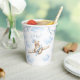 Elegant 'Oh Boy!' themed baby boy shower paper cups featuring cute watercolor teddy bear with blue bow flying on blue airplane and holding balloons. Perfect for boho style celebrations.