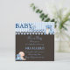 This Modern customizable baby shower Invitation features a baby & blue teddy bears on a striped blue & brown background. Customize it by adding your details in the font of your choice!