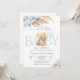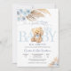 Celebrate the arrival of a sweet little one with this charming blue teddy bear baby shower invitation. Featuring soft pastel tones, elegant blue roses, pampas grass, and balloons, this design blends whimsical and modern style for a memorable event. Perfect for honoring parents-to-be, it includes customizable details for names, date, time, and location. A delightful choice for baby boy showers, this invitation adds warmth and joy to your celebration while making guests feel special.