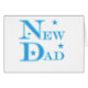 New Dad T-shirts, buttons, magnets, cards, tote bags, mugs, and more with blue text and star design.