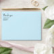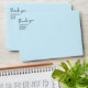Personalize this blue envelope design with this modern design template. Thank you Script that includes a family name and return address. Use these for your thank you baby shower cards, birth announcement cards.