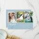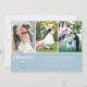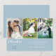Beautiful two-sided wedding thank you cards in pale blue, grey and white featuring three of your favourite vertical photos from your wedding day. Cute wedding ring design with thank you message that can be customized to read as you wish. Ours reads: Thank you for coming and showing you care. It meant so much to us, we're glad you were there. Then add your names. The reverse side of the card is coordinating blue.