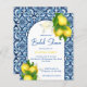 Blue tiles and lemon Amalfi Positano Mediterranean style bridal shower budget invitation template affordable bridal shower invitations.