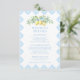 Dive into contemporary elegance with this details card tailored for a romantic Mediterranean wedding adorned with blue tile motifs. Highlighting a delicate lemon branches bouquet with blue watercolor flowers included. This customizable card allows you to personalize your wedding experience. Enhance its modern appeal by adding the qr code with wedding website address on the back side, elevating the overall sophistication of your wedding festivities.