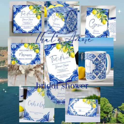 Blue Maiolica tiles lemons Italian bridal shower wedding backdrop, Mediterranean themed bridal shower citrus bridal shower personalized decor