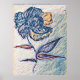 Artistic Watercolor Blue Tile Textured Flower Painting Poster.