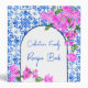 Blue Tiles and Bougainvillea elegant Mediterranean Greek Santorini Mykonos themed bridal shower gift recipe book binder personalized bridal shower gift recipe book